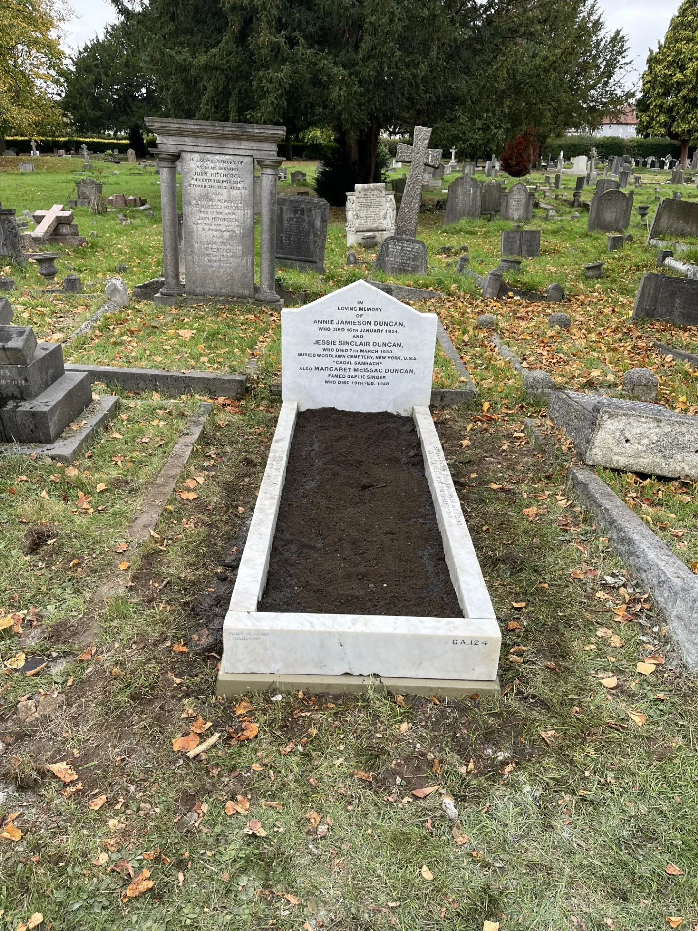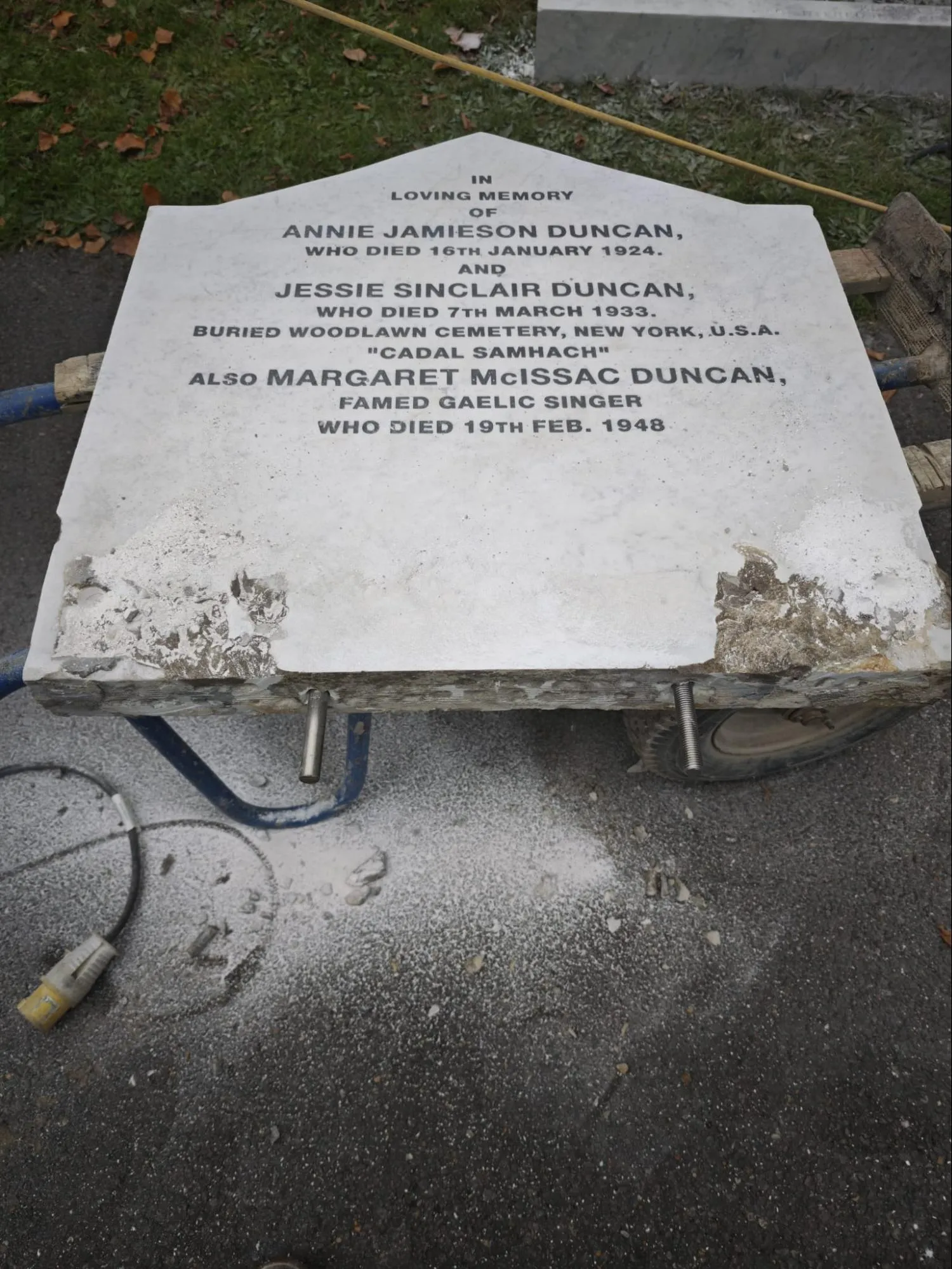 We are grateful to all those who donated to this project — there is still some way to go to meet the funding, so all further donations are warmly welcomed. You can donate here: https://www.crowdfunder.co.uk/p/margrat-duncan-grave-restoration
