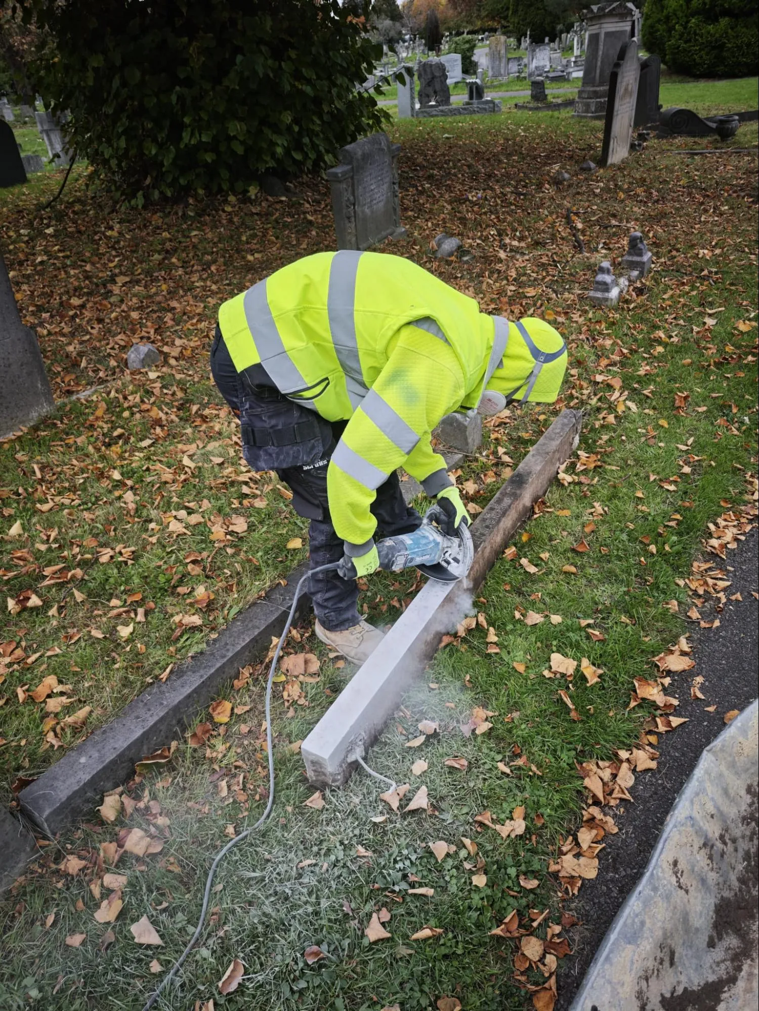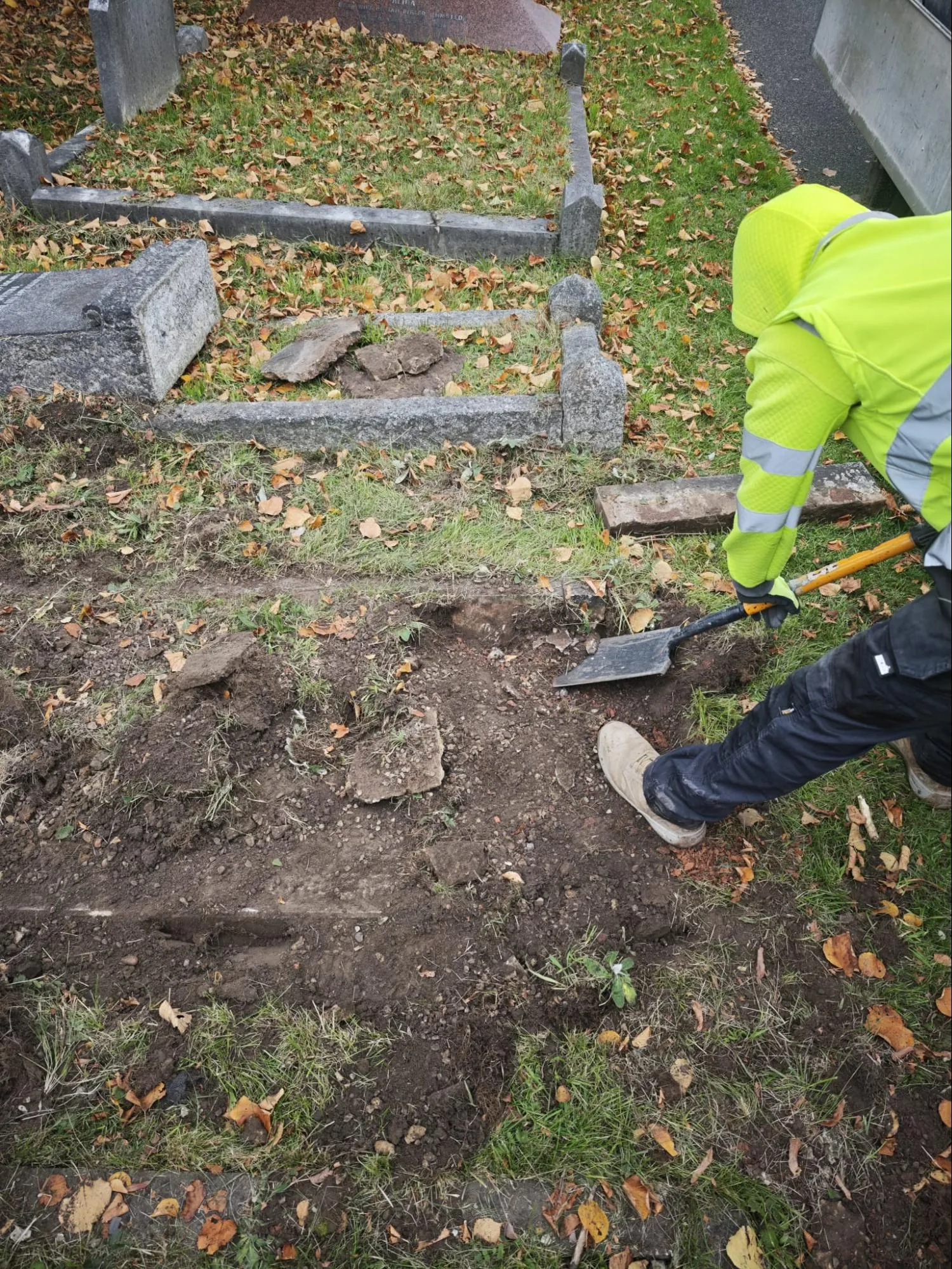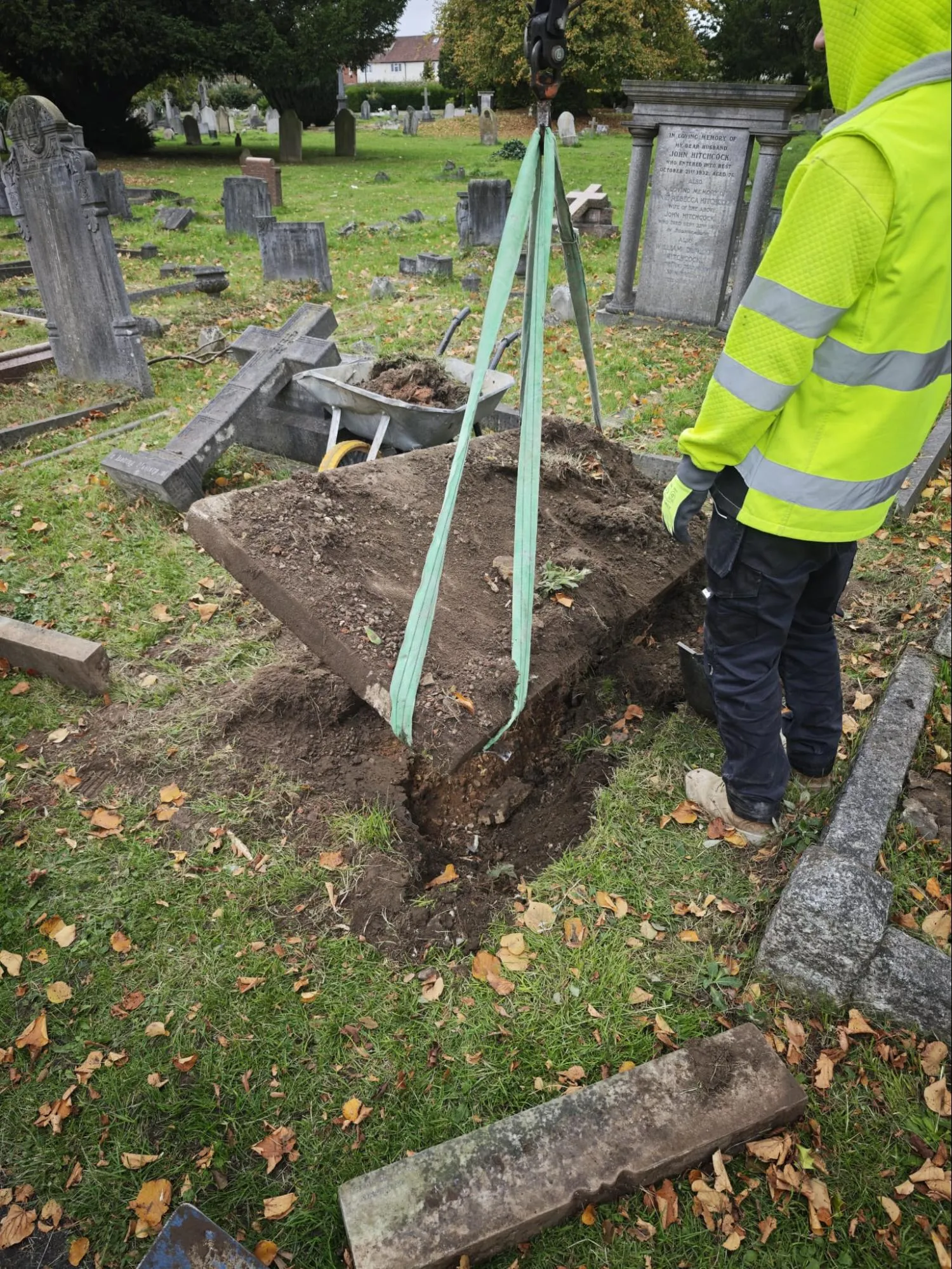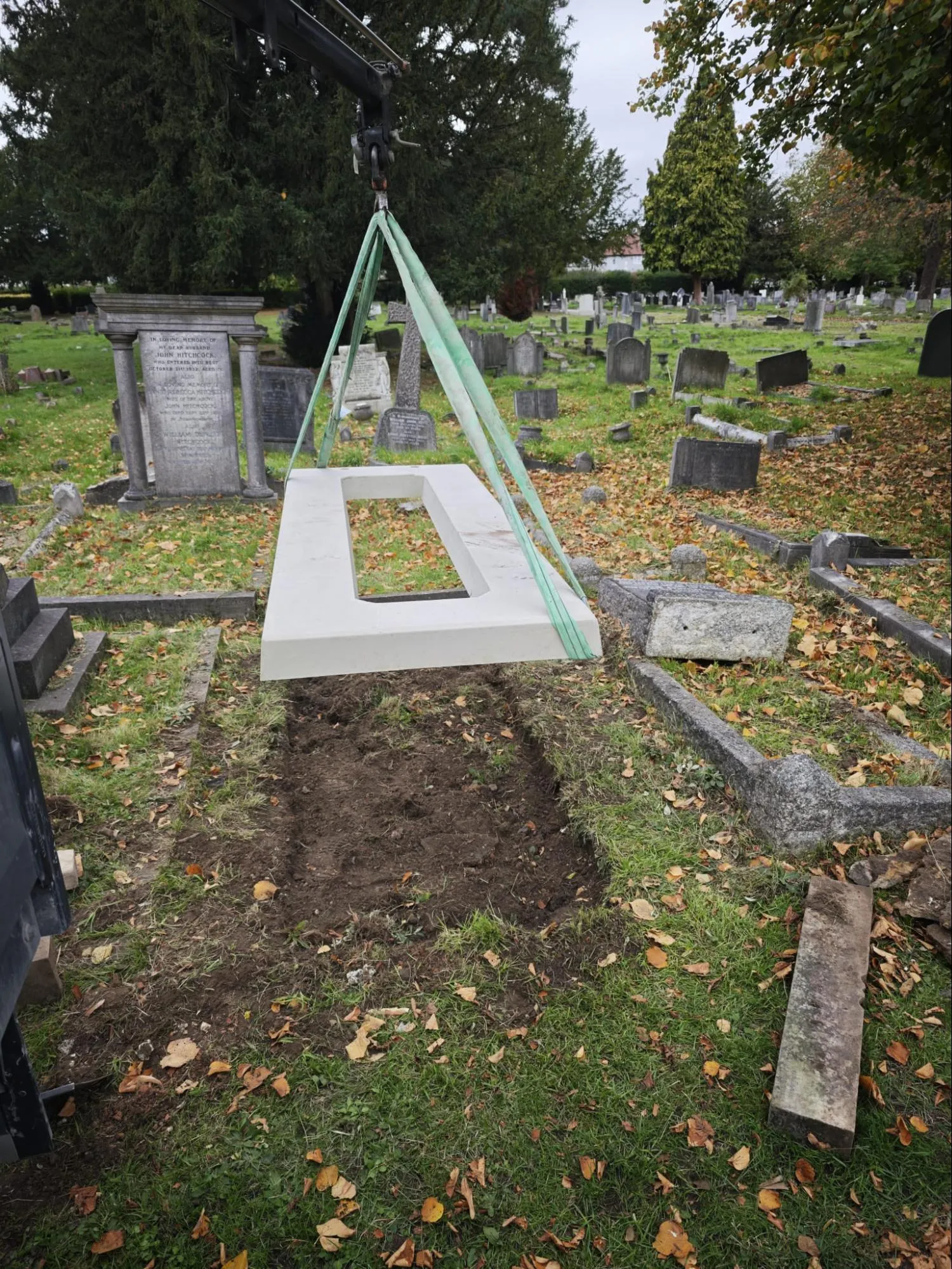 When the stonemasons began their work, they discovered that the memorial was much larger than the portion visible above ground. Our thanks go to Kenward & Sons Monumental Masons for their work to restore the gravestone.